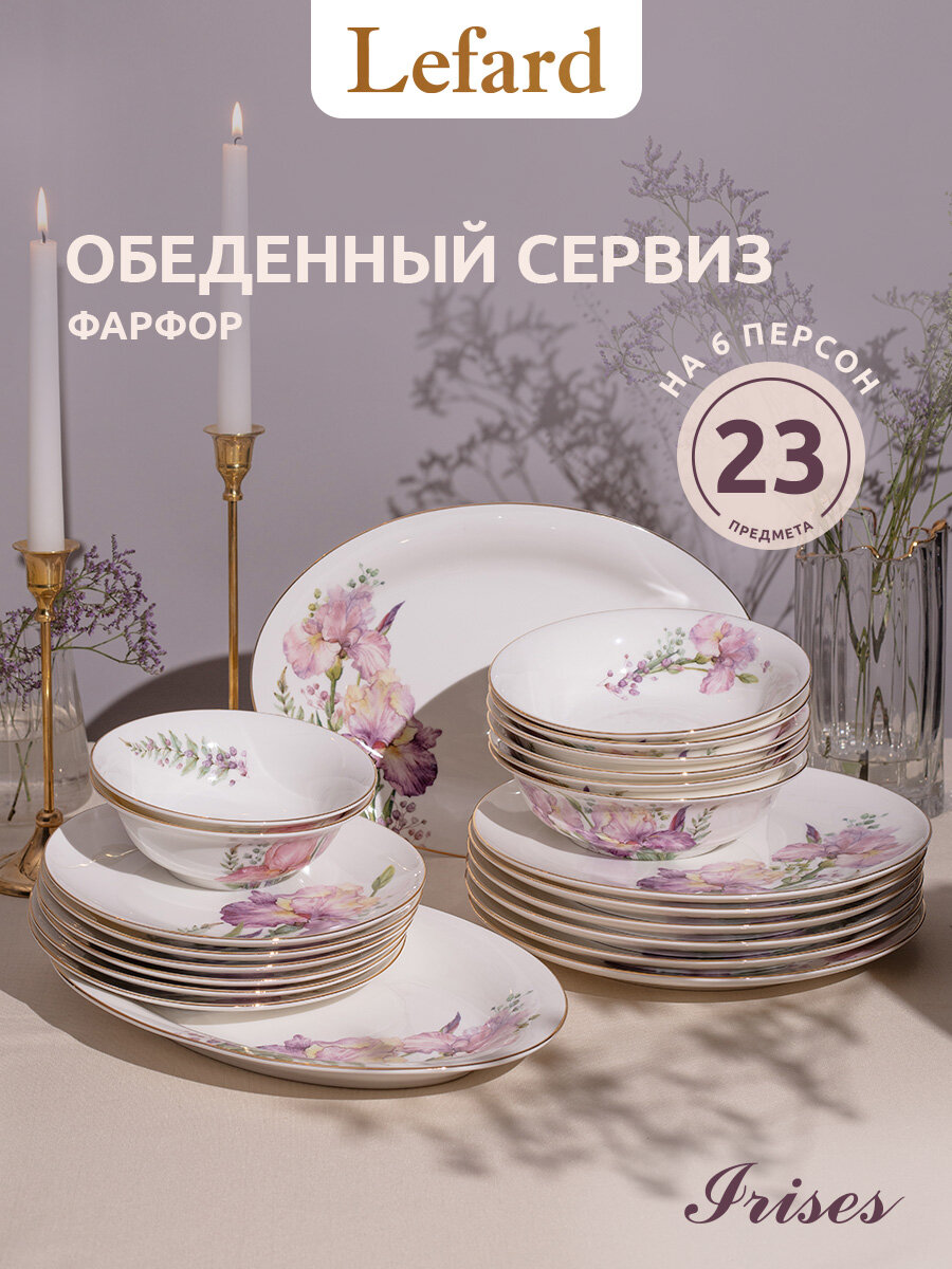Обеденный сервиз из 23 предметов на 6 персон. Семья собирается за одним столом, чтобы разделить тепло общения и вкусные блюда. Тонкий фарфор, утончённый дизайн и всё необходимое для полноценной сервировки — создайте атмосферу уюта и красоты дома. Такой сервиз прослужит долгие годы и будет радовать каждый день.