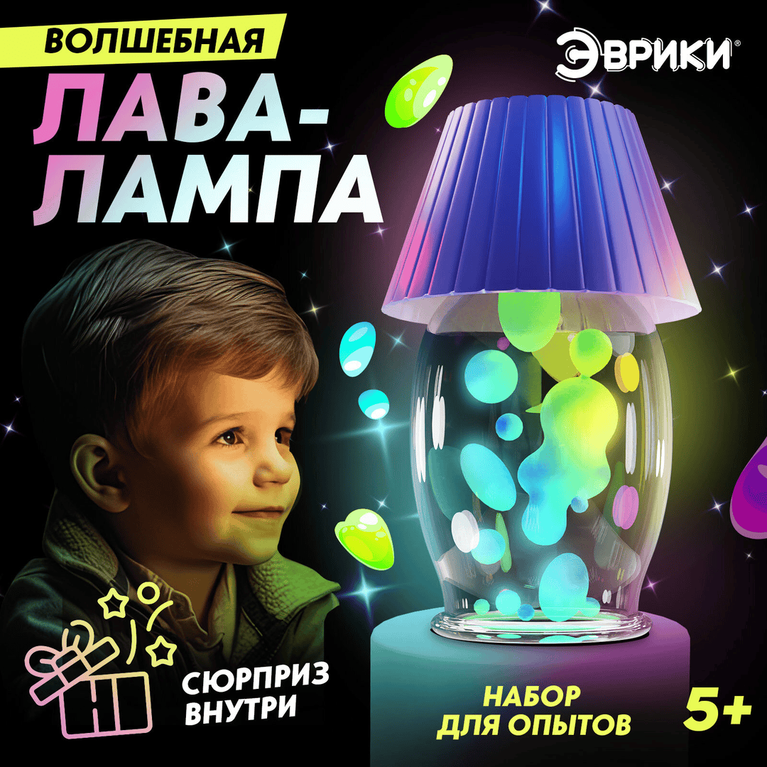 - Набор для опытов «Волшебная лава‑лампа» и большой набор опытов для мальчиков — наглядные эксперименты с яркими результатами.