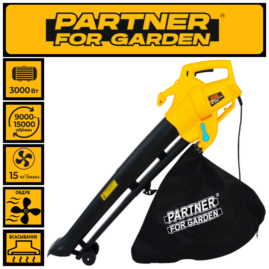 - Садовый пылесос — обратите внимание на режимы всасывания и функция измельчения, это уменьшит объём мусора.