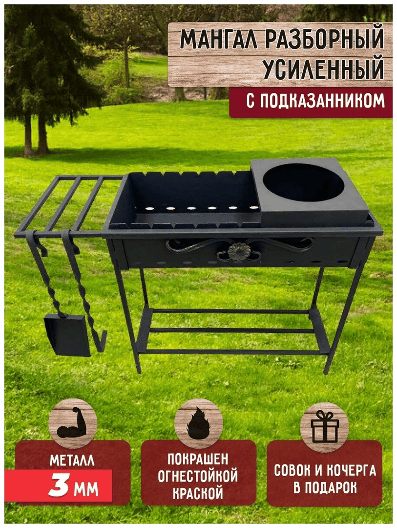 - Мангал — стационарный мангал прочнее, портативный удобнее для переноски; материал — чугун или сталь с термостойким покрытием.