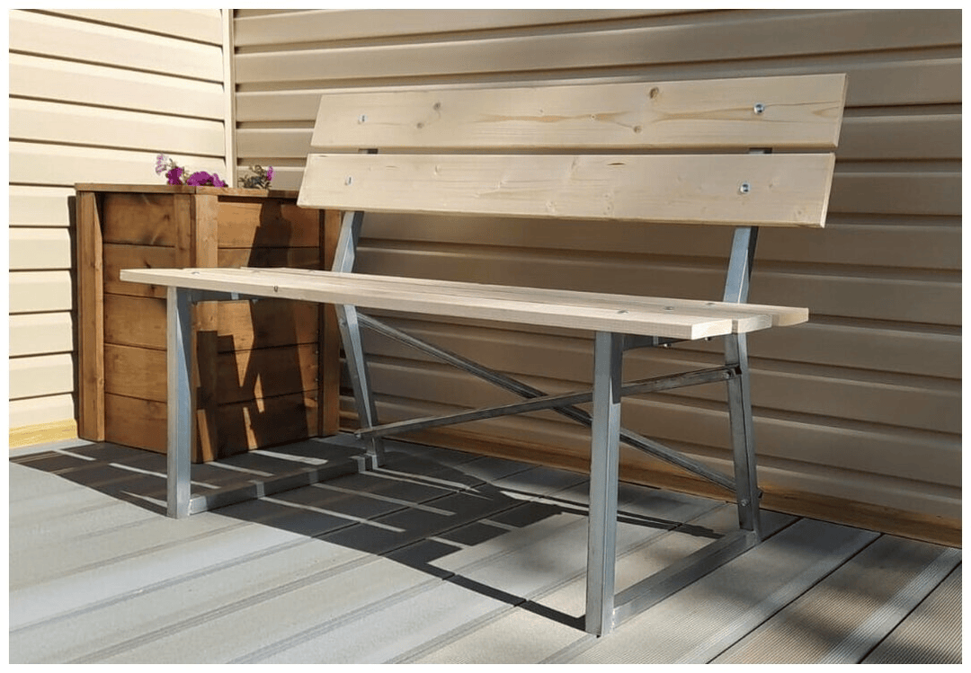 - Скамейка для дачи — дерево требует обработки от влаги; металл — порошковой окраски от ржавчины.