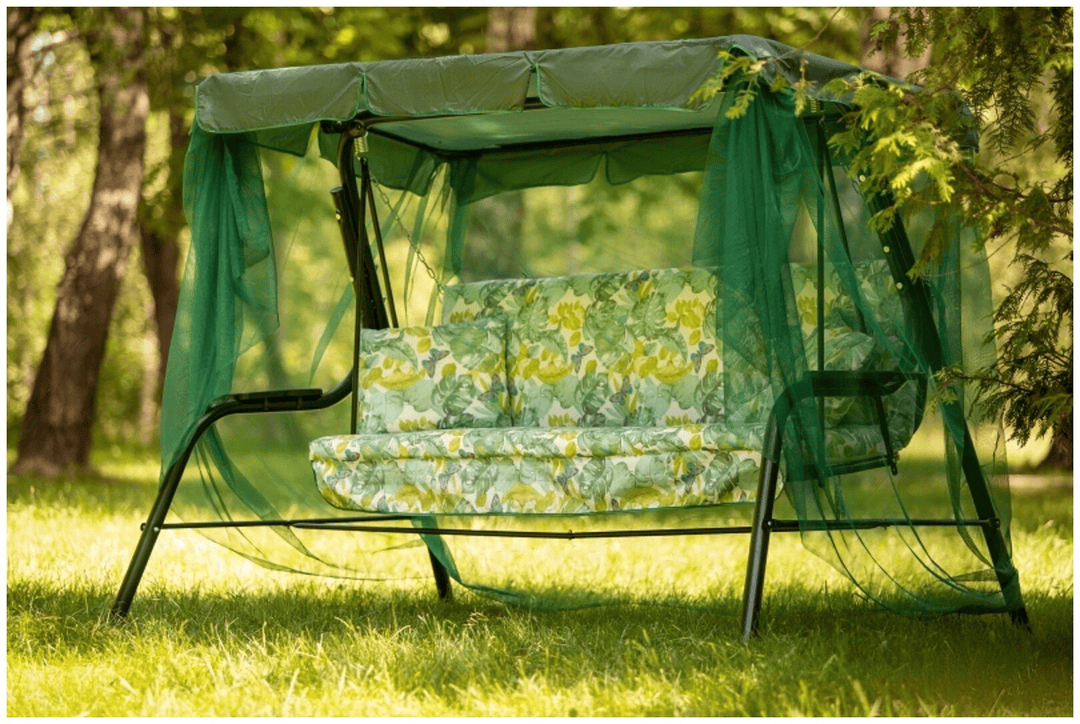- Качели садовые — каркас должен выдерживать нагрузку, ткань — быть прочной и водостойкой.