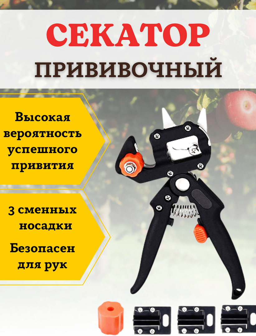 - Секатор прививочный — компактный и полезный инструмент для обрезки и прививки.