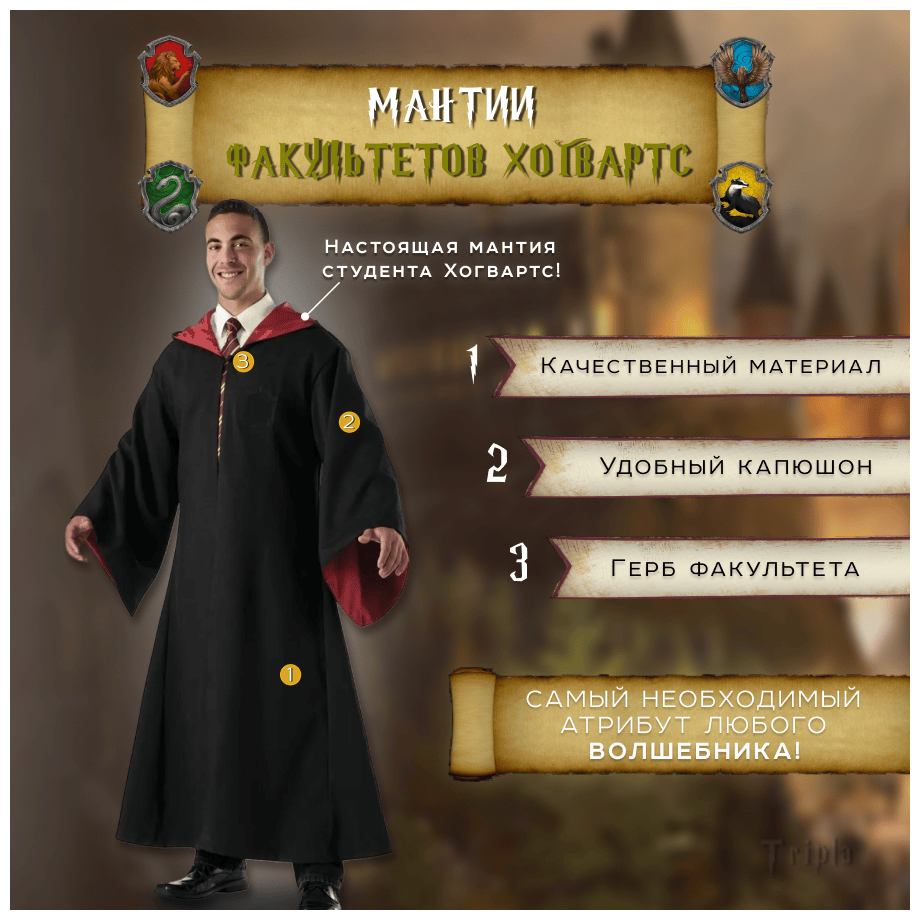 - Детская мантия волшебника — для ролевых игр и праздников. Обращайте внимание на размер и качество швов.