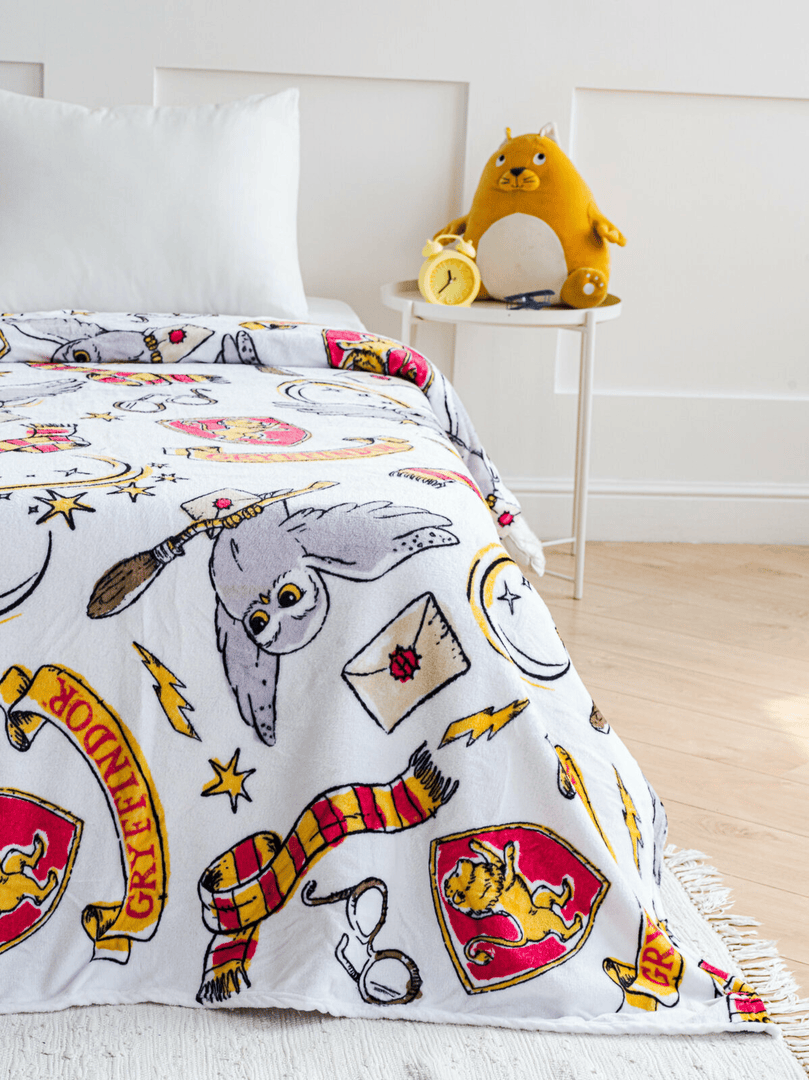 - Плед Гарри Поттер — для уюта дома. Хороший подарок молодым семьям или тем, кто любит устраивать киновечера.