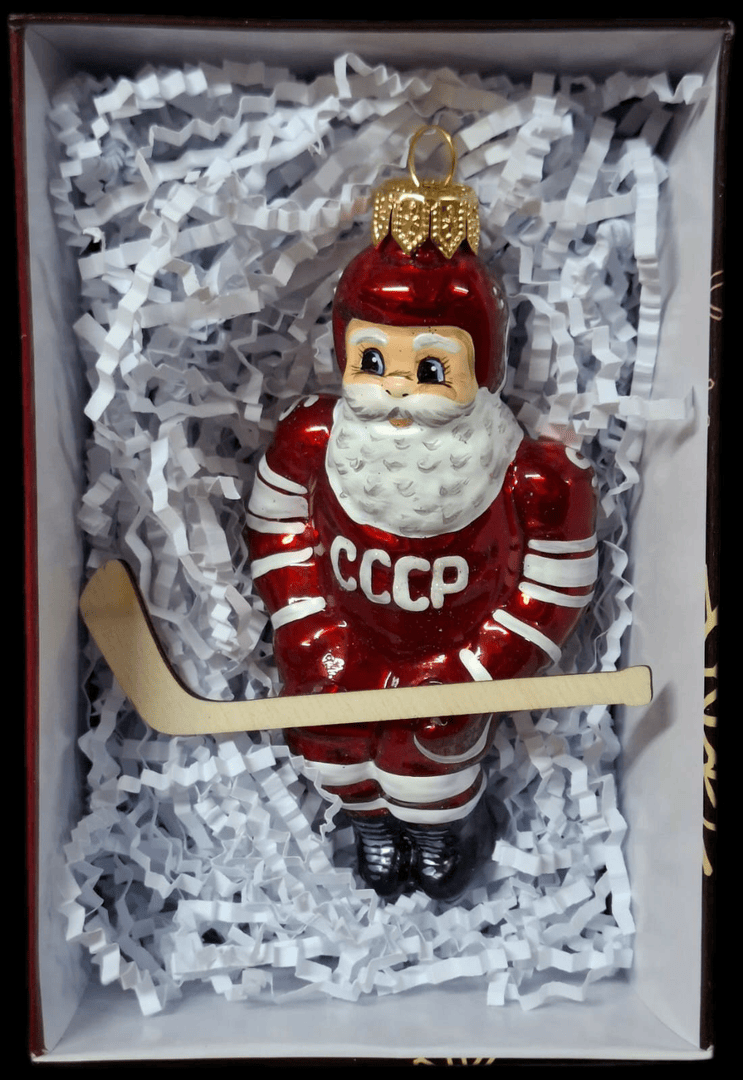 - Игрушка на ёлку «Дед Мороз хоккеист» — милая тематическая игрушка для Нового года.