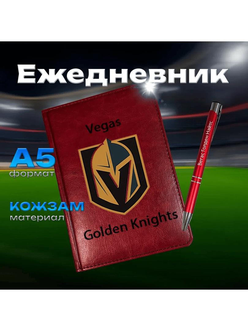 - Ежедневник‑планер и ручка клуб НХЛ «Вегас Голден Найтс» — практичный и стильный подарок для организованного болельщика.