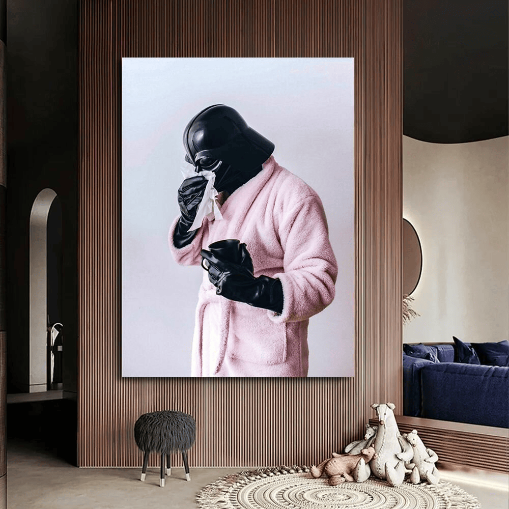 - Постер с юмором «Дарт Вейдер» — простой и недорогой подарок для тех, кто любит стильные и шутливые вещи.