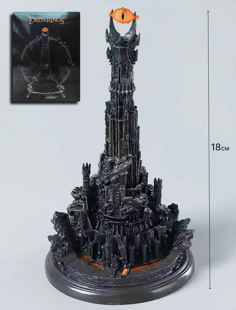 - Фигурка башни Барад-дур / Глаз Саурона — эффектный предмет декора для тёмной комнаты или игровой зоны.