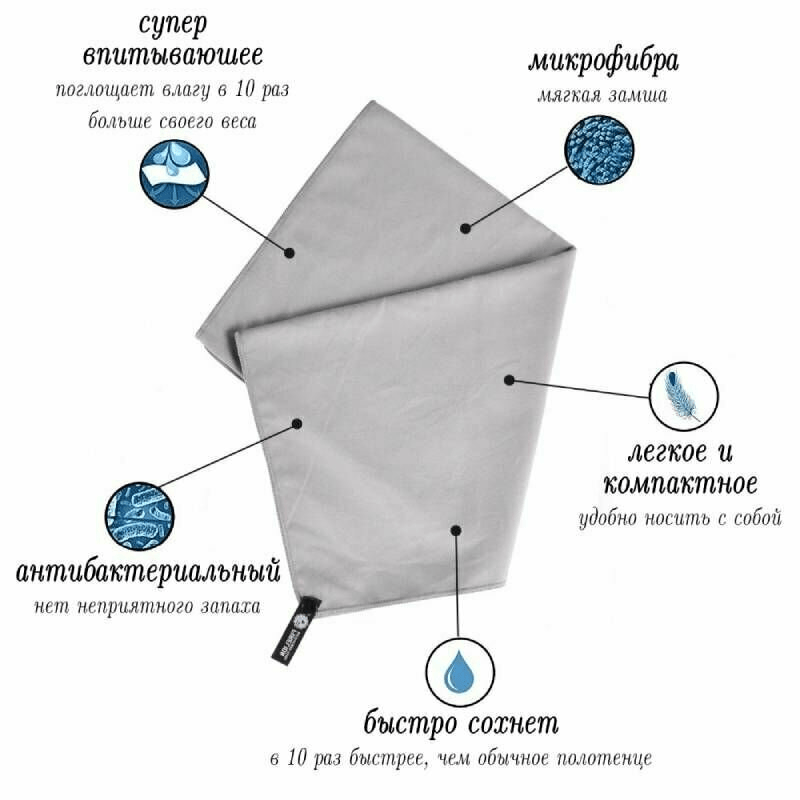 Лёгкое и компактное, идеальное для фитнеса и путешествий. Обратите внимание на материал (микрофибра высокого качества), размер и плотность (GSM). Легко стирается и занимает мало места в сумке.