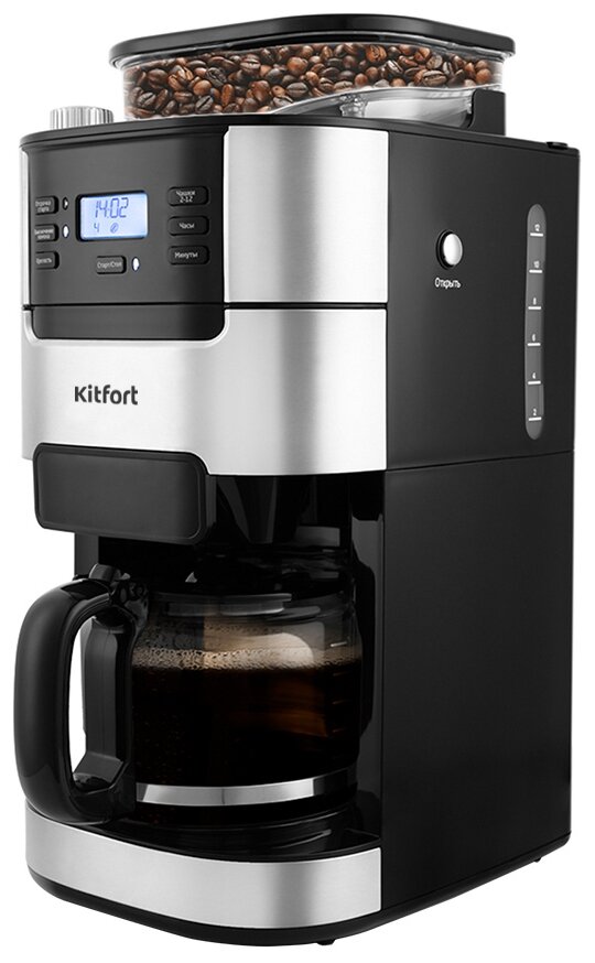 Капельная кофемашина готовит ароматный кофе одним нажатием кнопки. Встроенная кофемолка автоматически измельчит кофейные зёрна и засыпет молотый кофе в фильтр, а затем заварит его в соответствии с вашими предпочтениями. Функция автоматического отключения обеспечивает безопасное использование прибора и экономию электроэнергии.