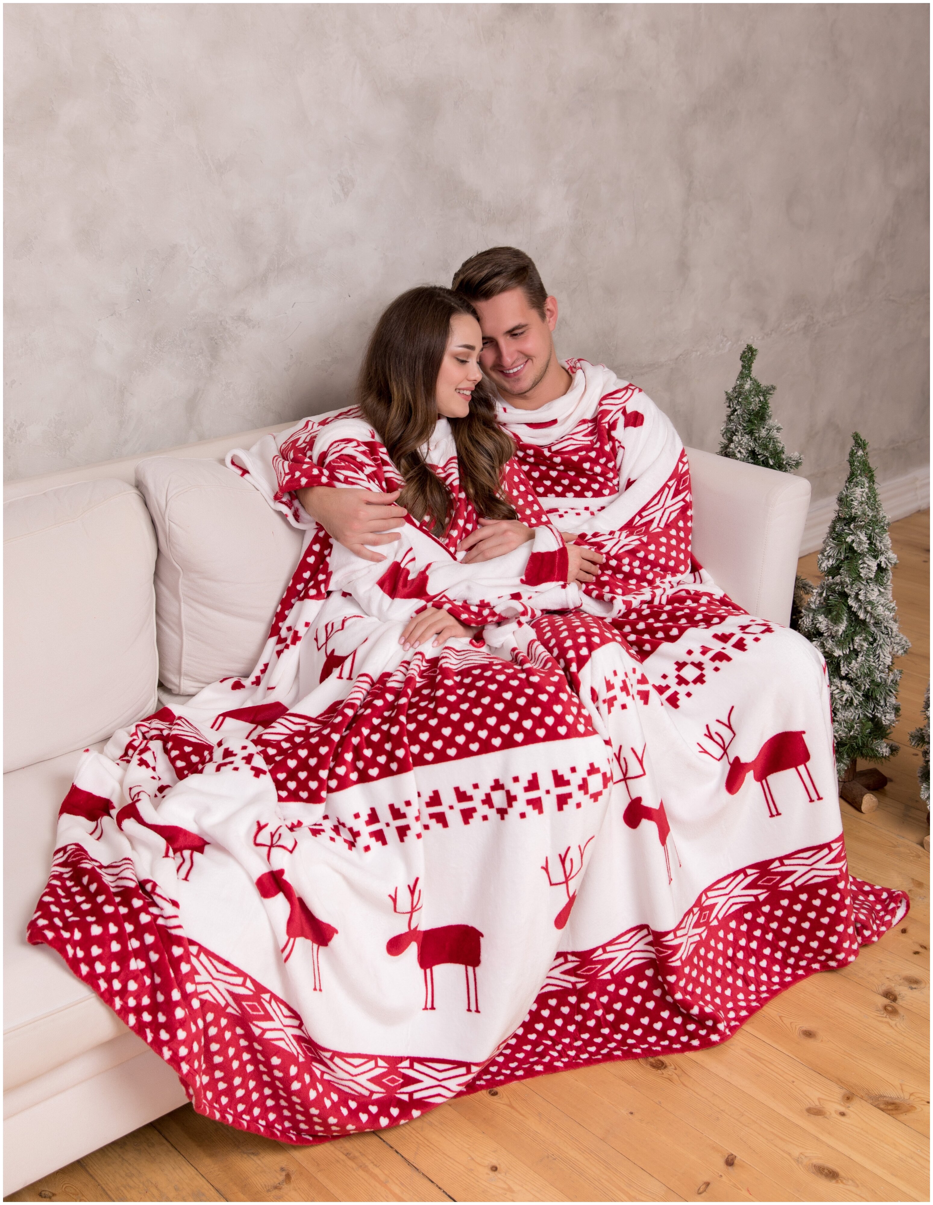 Плед для двоих с 4 рукавами - это незаменимая вещь для семейной пары. Наслаждайтесь работой за ноутбуком, чтением книги, общением с друзьями в мессенджерах, любимым чаем и едой, не вылезая из-под пледа. Удобный карман спереди пригодится для хранения пульта от телевизора или телефона.