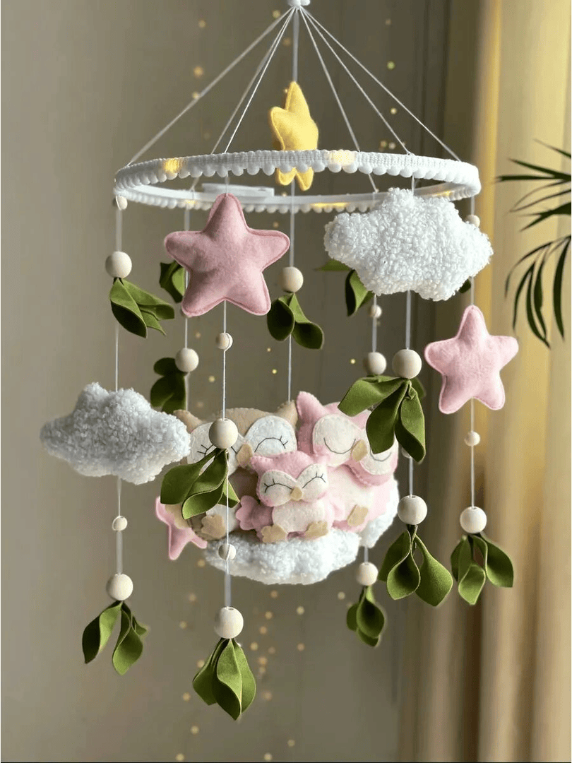Мягкий мобиль в кроватку из фетра — отличный подарок на рождение близнецов: он сочетает практичность и тёплую эмоцию, мягкие подвески, спокойное вращение и встроенная музыкальная заводная шкатулка помогают убаюкать и занять каждого малыша, а контрастные элементы развивают зрительное внимание и умение следить за движением. Крепление и кронштейн подходят к разным типам бортиков, поэтому мобиль легко установить так, чтобы оба ребёнка видели игрушки, а отсутствие проводов делает его безопасным и удобным в быту. Ручная работа из гипоаллергенного корейского фетра и холлофайбера упакована в подарочную коробку — такой мобиль будет и практичным аксессуаром на первый год. Простота ухода (сухая чистка) и надёжное крепление особенно пригодятся молодым родителям, поэтому подарок оценят мамы и папы двойняшек, а также родственники и друзья, которые хотят сделать душевный и полезный презент.