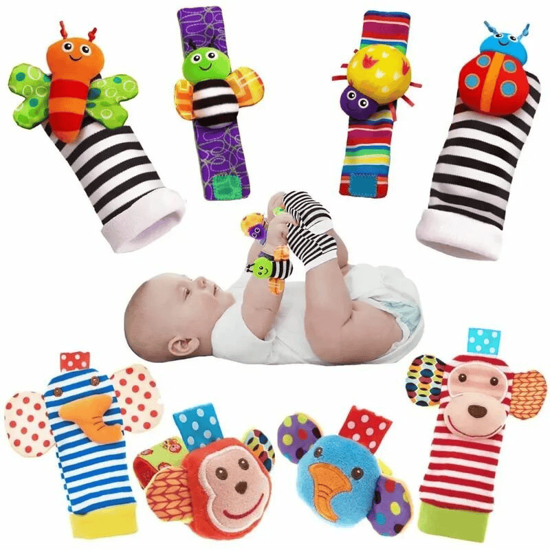 Набор погремушек-носочков и браслетов — лёгкий и практичный подарок для семьи с близнецами: в комплекте две носочки и два браслета, так что каждому малышу достанется своя игрушка. Носочки и напульсники на липучках безопасны и мягки, дают звуковую и цветовую стимуляцию, помогают развивать слух, зрение и мелкую моторику в первые месяцы жизни. Такой презент удобен и для повседневного использования, и как «запасная» игрушка в коляске или кроватке — он и развлекает малыша, и немного облегчает заботу родителей. Унисекс‑дизайн и гипоаллергенные материалы делают набор подходящим подарком как для мальчика, так и для девочки.