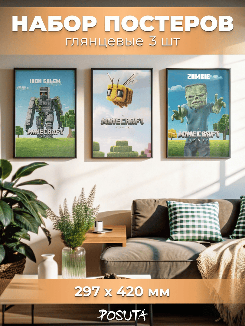 - Постеры в рамках и пиксельные обои — поштучно или целыми панелями (проверьте размер и качество).