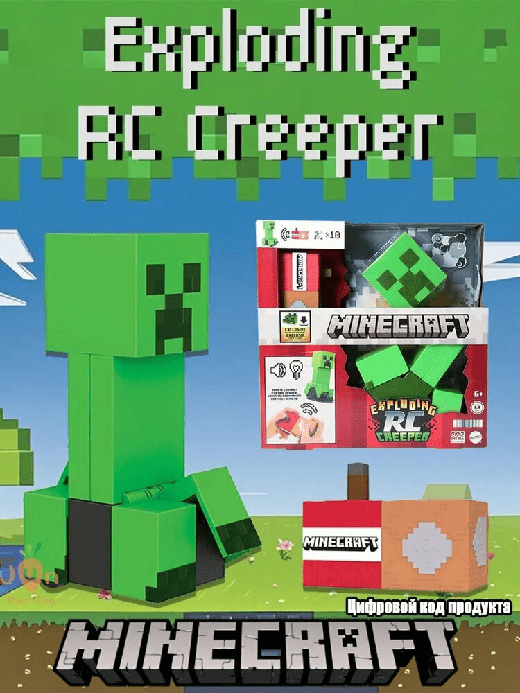 - Крипер с дистанционным управлением — интерактивная игрушка-монстр, которая может «взрываться» (безопасно) и гоняться за игроками.