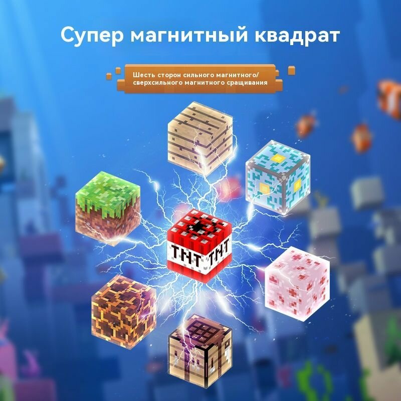 - Магнитные кубики — специальные кубы в стиле Minecraft: удобно собирать и перестраивать, развивают пространственное мышление. Обратите внимание на возрастные ограничения: мелкие детали и сильные магниты небезопасны для малышей.