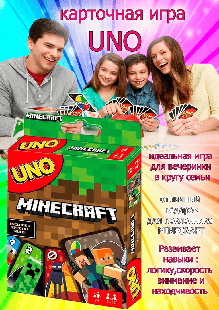 - UNO в стиле Minecraft — знакомая всем карточная игра с тематическими картами.