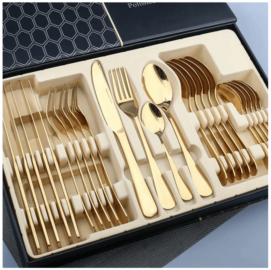 - Набор столовых приборов — долговечный и практичный подарок, который пригодится на семейных застольях.