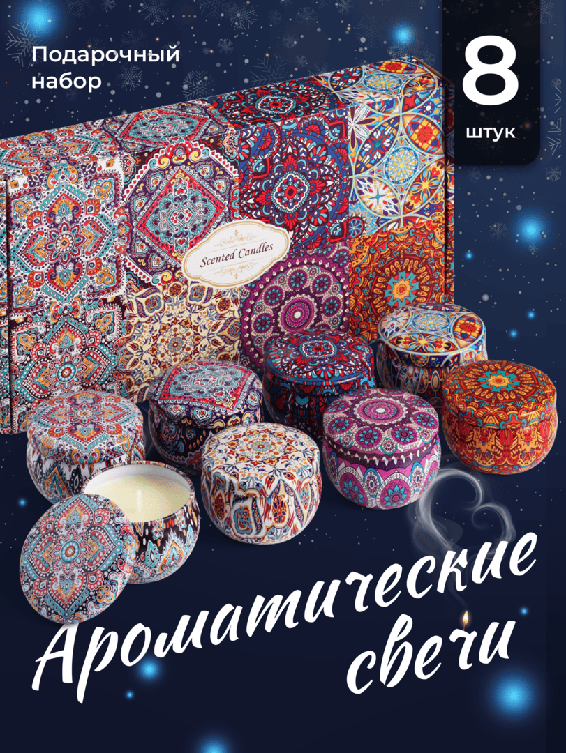 - Аромолампа-диффузор и набор аромасвечей — создают праздничную атмосферу и помогают расслабиться или наоборот получить дополнительный заряд энергии , в зависимости от используемых аромасел.