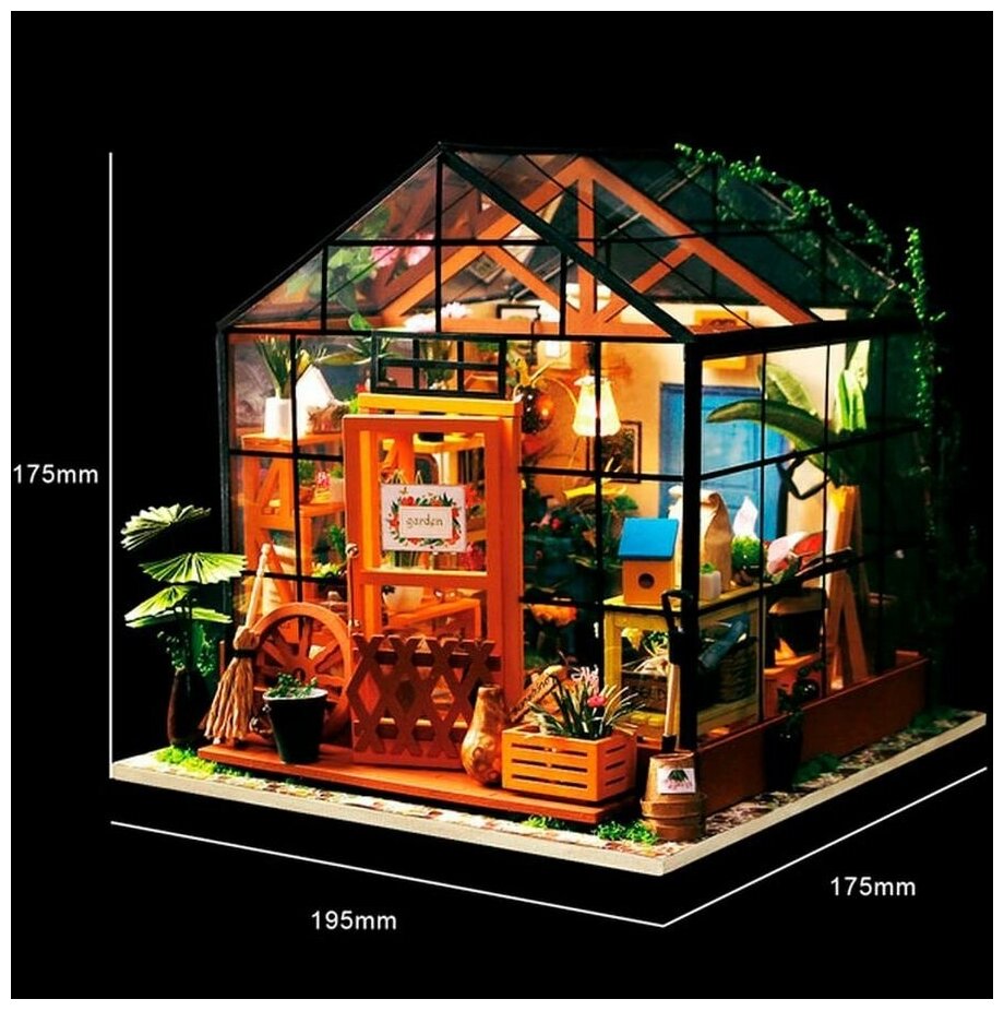 Сборная модель миниатюрный интерьерный конструктор, румбокс "Цветочная оранжерея" с подсветкой - это конструктор для взрослых, увлекательное путешествие в мир миниатюр.