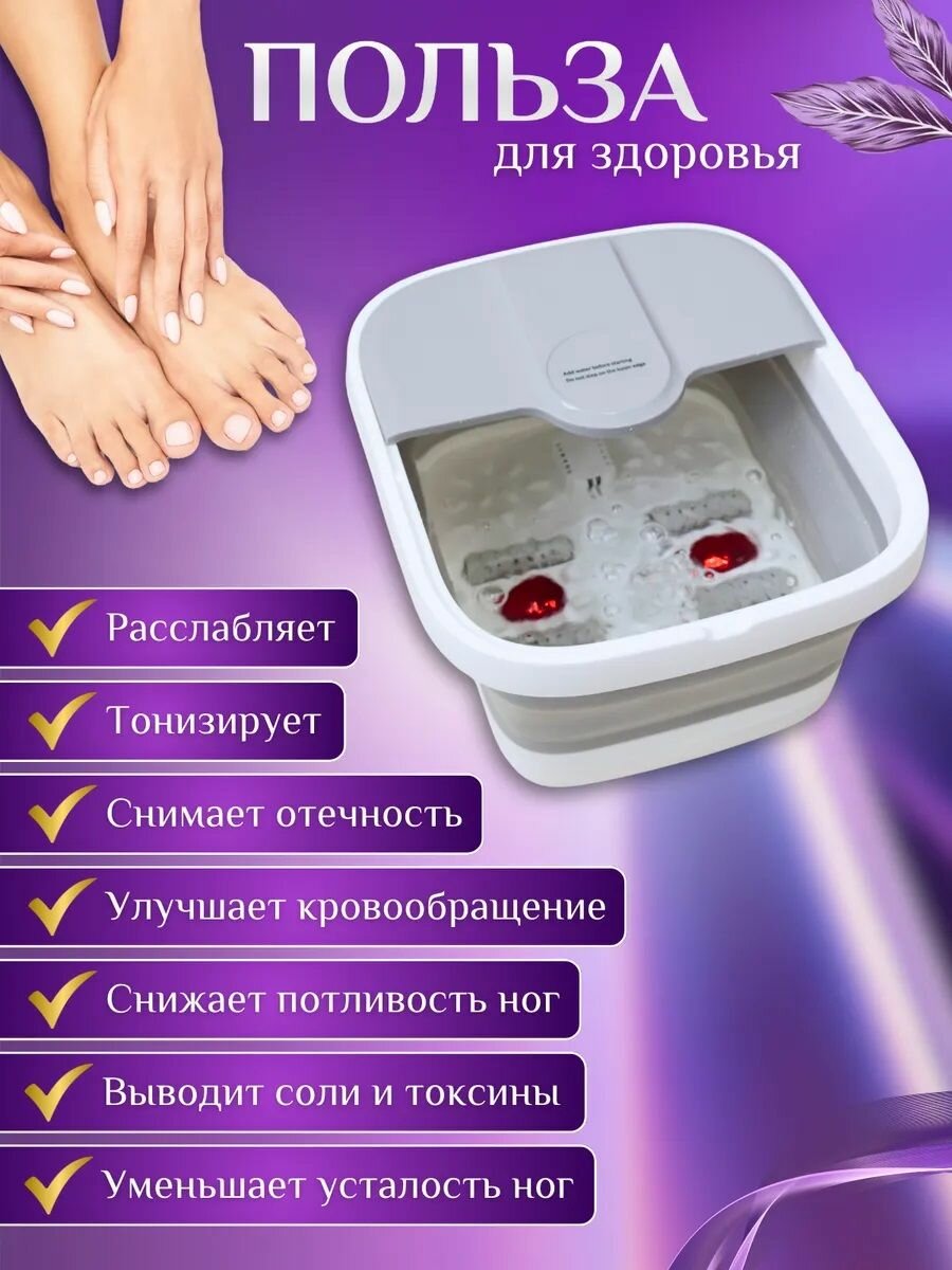 Это складная гидромассажная ванночка для ног с подогревом — компактное и практичное решение для домашнего спа. Гидромассаж, массажные ролики, микротоки и светотерапия помогут снять усталость, улучшить кровообращение и поддержать тонус кожи. Лёгкая в использовании и незаметная в хранении, она отлично подойдёт как для городской квартиры, так и для дачи. Такой подарок будет особенно ценен той, которая любит заботиться о здоровье или просто нуждается в отдыхе после активного дня.