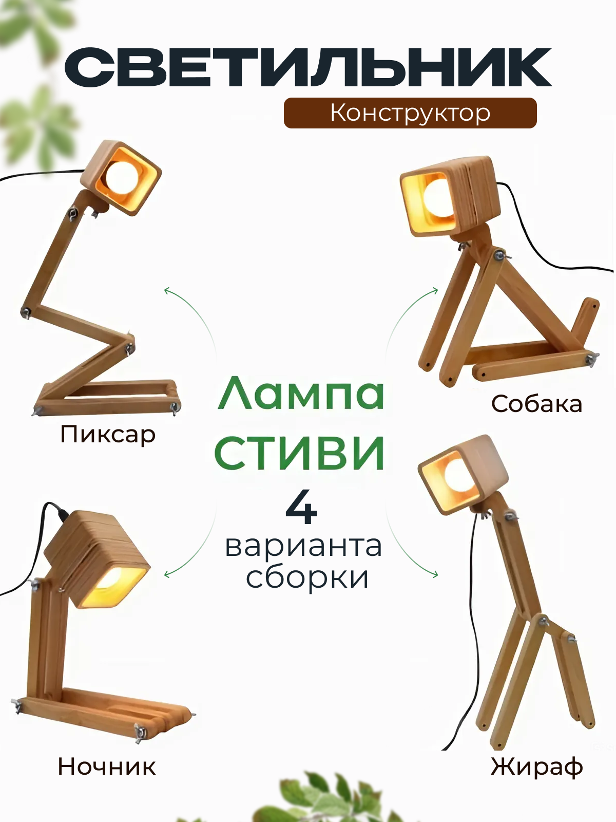 Небольшая настольная лампа‑трансформер в виде конструктора: из одного набора можно собрать четыре варианта — собачку, жирафа, лампу в стиле Пиксар и классическую лампу для чтения. Такой подарок подойдёт свекрови, которая ценит практичные и при этом оригинальные вещи: она пригодится и любительнице чтения, и хозяйке для уютного декора.