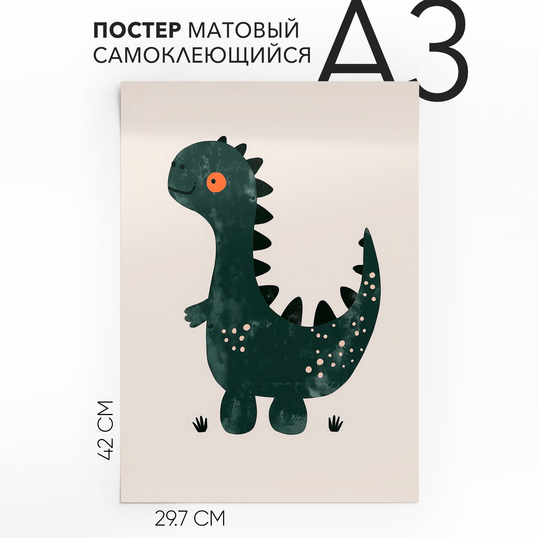 Самоклеящийся постер формата с динозавром — аккуратный и долговечный элемент для детской комнаты или зоны праздника. Влагостойкая поверхность позволяет использовать его в разных местах и быстро поднимать настроение интерьера. Легко приклеить и снять.