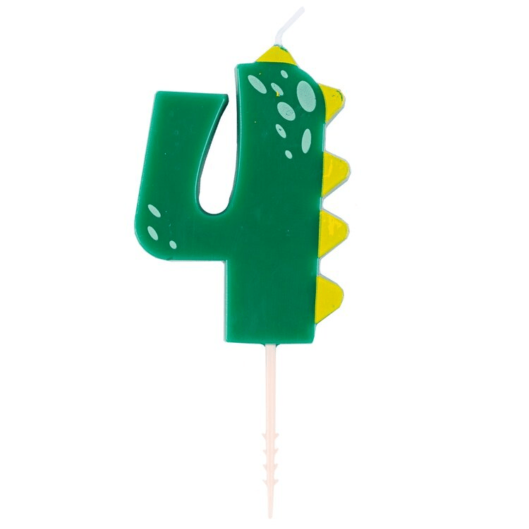 Свеча-цифра в стиле динозаврика — небольшая деталь, которая делает торт тематичным.