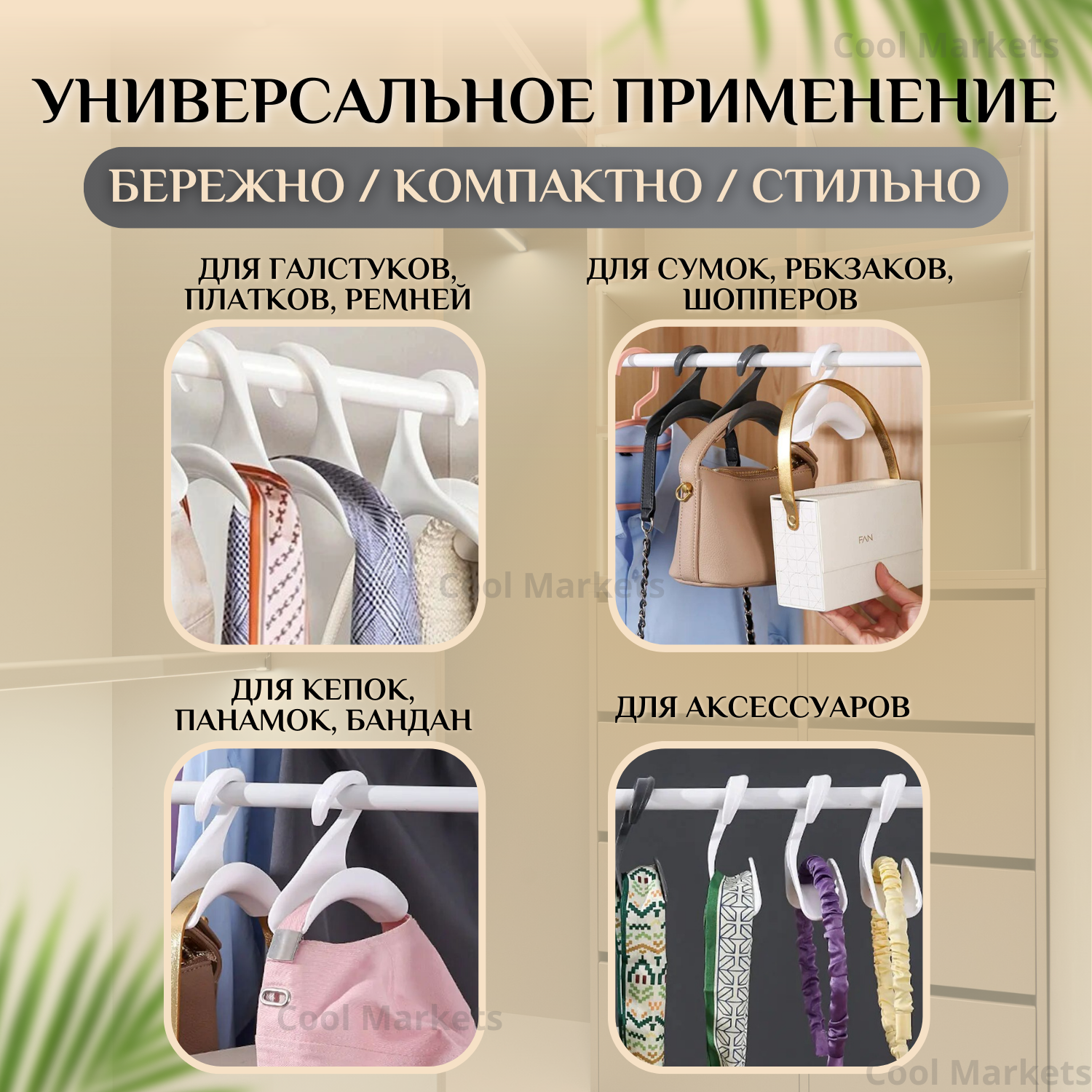 Легкая и простая в использовании универсальная вешалка для аксесуаров будет востребована в каждом доме. Очень удобно хранить сумки, платки, головные уборы, галстуки и многое удругое. Удобное хранение аксесуаров в шкафу, на дверных ручках, стульях, и других предметах в помещениях.