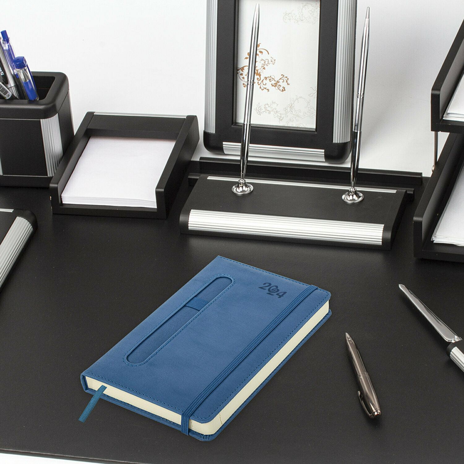Стильный ежедневник для планирования дел на год. Снабжен резинкой-фиксатором, благодаря чему ежедневник не откроется в сумке или портфеле. Дополнением является закладка-ляссе, с помощью которой при необходимости можно быстро открыть ежедневник на нужной странице.