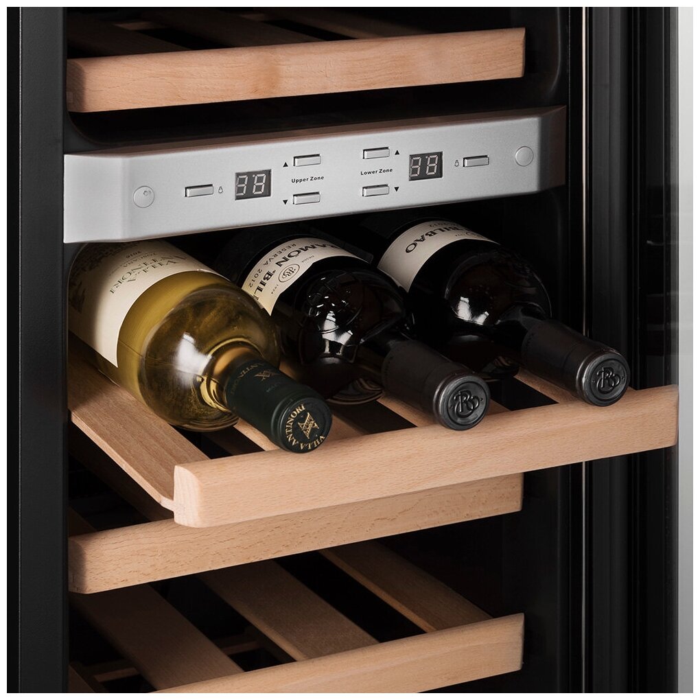 Шкаф для хранения вина, работающий по термоэлектрической технологии. Он элегантно выглядит, экономно расходует энергию и не является источником шума. Через дверцу с прозрачным тонированным стеклом можно любоваться бутылками, причём их содержимое надёжно защищено от окисления