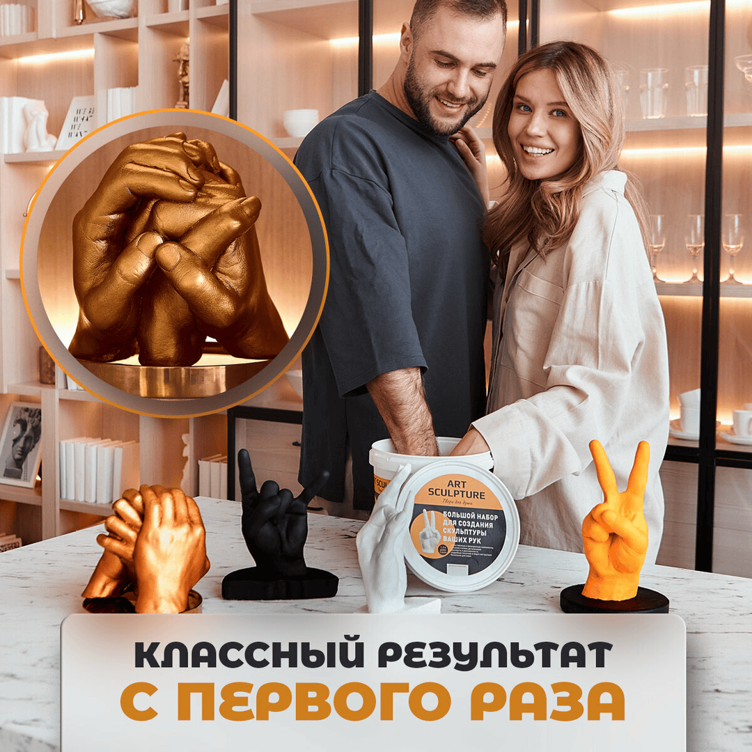 - Хочет оригинальности — авторский набор "Руки влюбленных", слепок рук для двоих, авторская статуэтка.