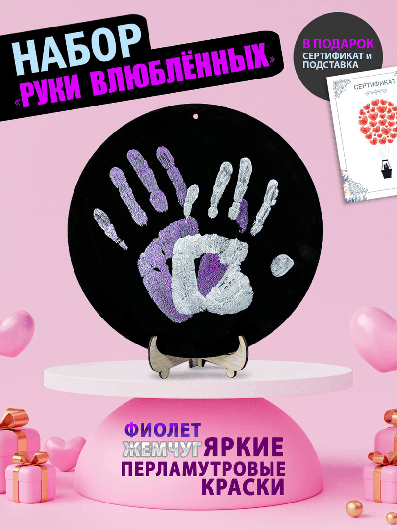 - Слепок рук для двоих + авторский набор "Руки влюбленных" — трогательная композиция воспоминаний.