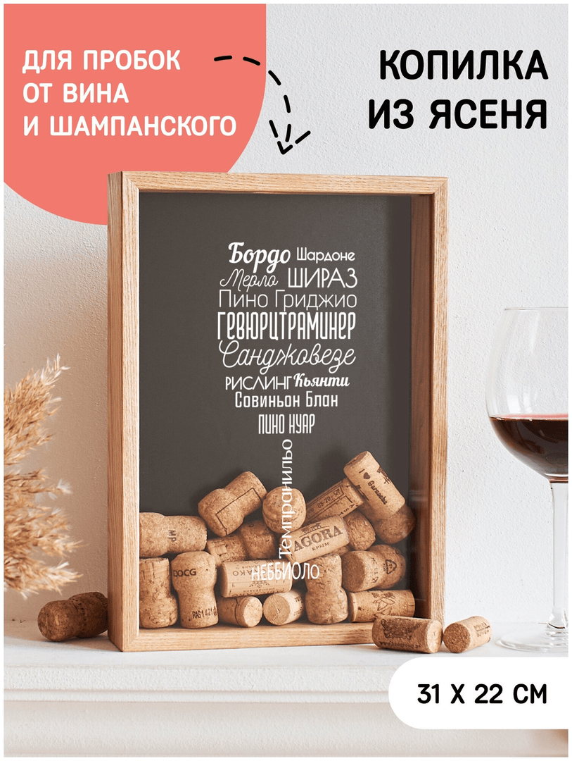 Копилка для винных пробок — продолжает тему природных материалов и «корней» отношений, превращая каждую пробку в небольшую память о совместных праздниках и ужинах. Собирая пробки в декоративную деревянную коробку или рамку с окошком, пара визуально видит пройденные вехи за пять лет. Такой подарок особенно понравится любителям вина, гостеприимным хозяевам и тем, кто ценит интерьер в стиле эко.