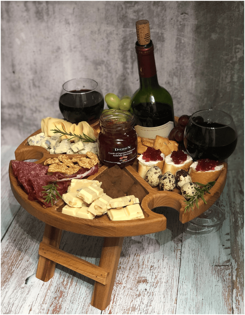 Винный столик из дерева — одновременно практичный и символичный подарок: он подчеркивает тему праздника своей натуральной текстурой. Такой столик удобен для романтических вечеров вдвоем — держит бутылки, бокалы и закуски под рукой, а деревянная отделка впишется в интерьер кухни, гостиной или террасы.