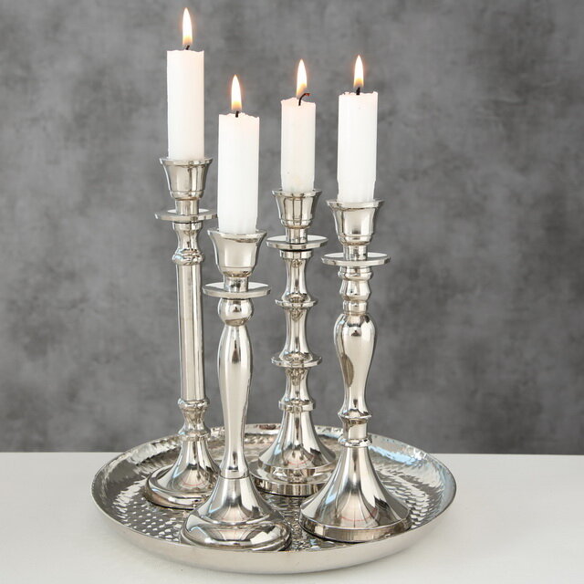 • Набор подсвечников — создают атмосферу на романтическом ужине дома. Материалы: металл, стекло, керамика. Подберите свечи в тон — розовые или кремовые.
