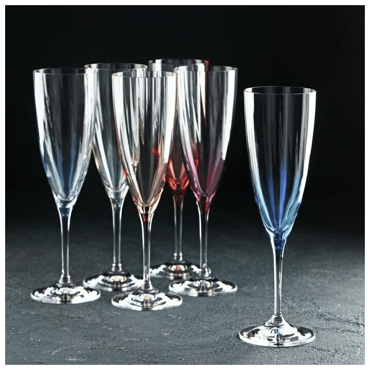Набор бокалов для шампанского из чешского стекла украсит любое торжество и станет достойным подарком на новоселье.