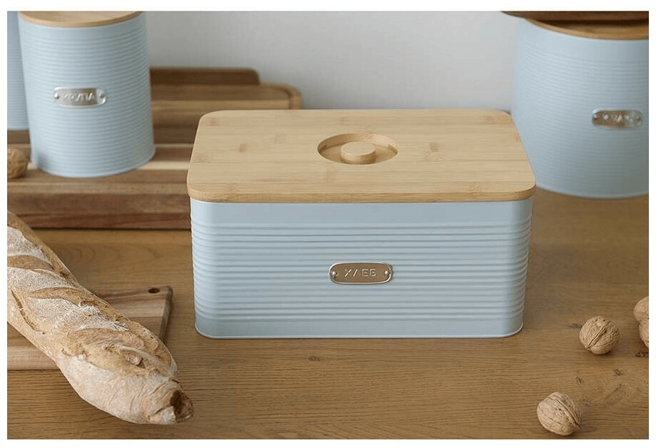Стильная хлебница сочетает в себе лаконичный дизайн и высокую практичность. Такой аксессуар станет прекрасным дополнением любого современного кухонного интерьера.
