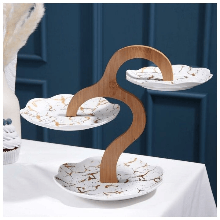 Трехъярусное блюдо для красивой сервироки стола фруктами или сладкими десертами.