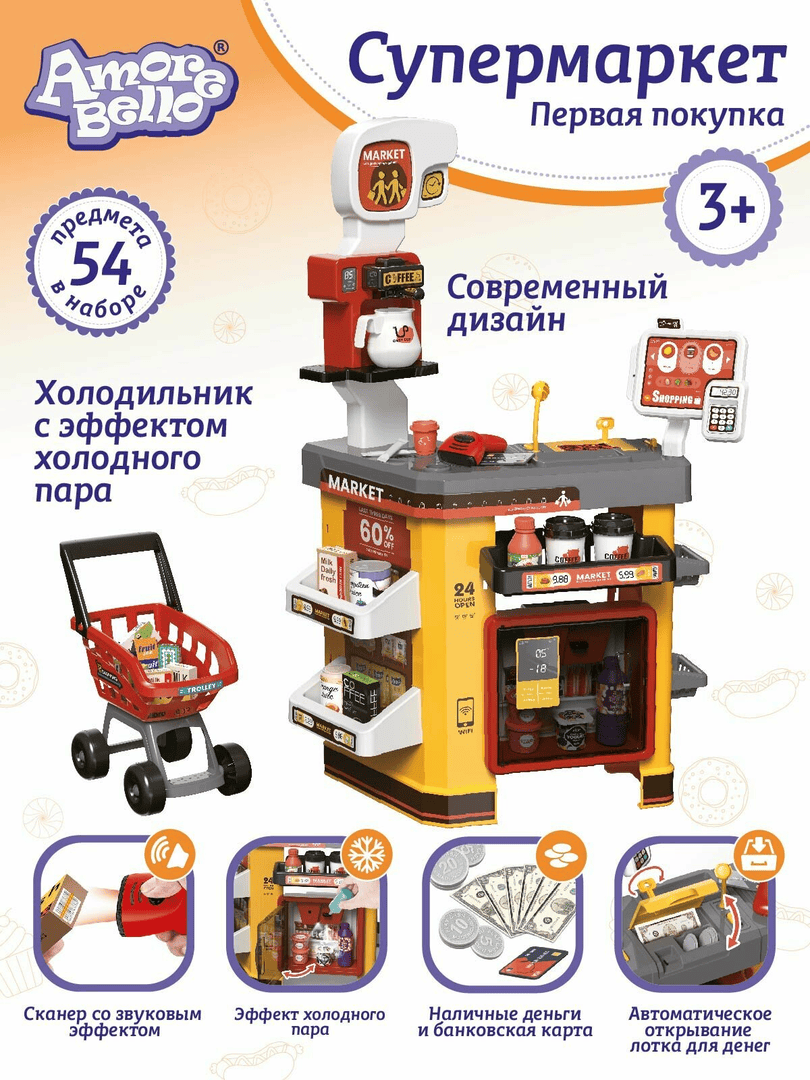 - Набор "Супермаркет с тележкой" — ролевые игры, счёт и социальные навыки в одном: оформите корзинки с «продуктами» для каждой.