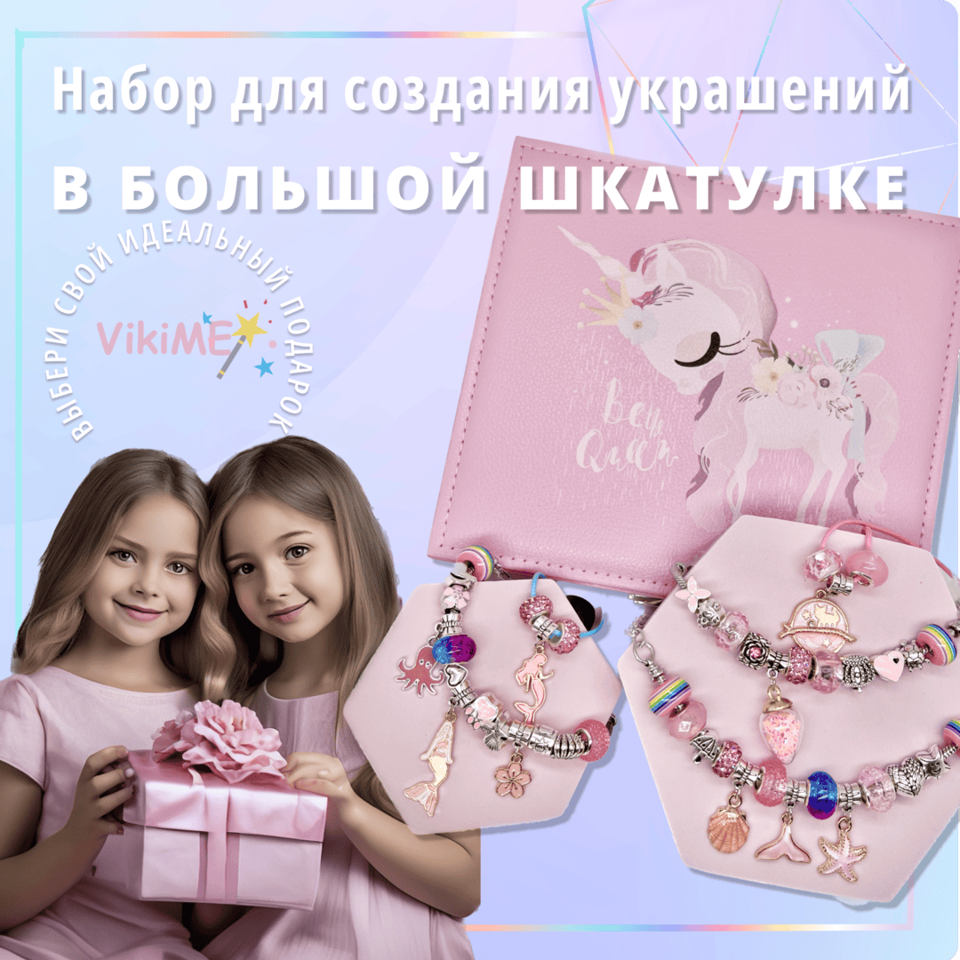 - Набор для создания украшений в большой шкатулке — развивает мелкую моторику и вкус; выбирайте крупные элементы, чтобы исключить риск проглатывания.