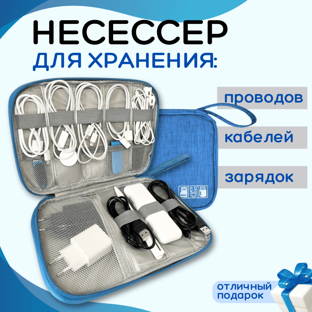 - Несессер для проводов: обратите внимание на отделения и материал — жесткий корпус защищает зарядки при перевозке.