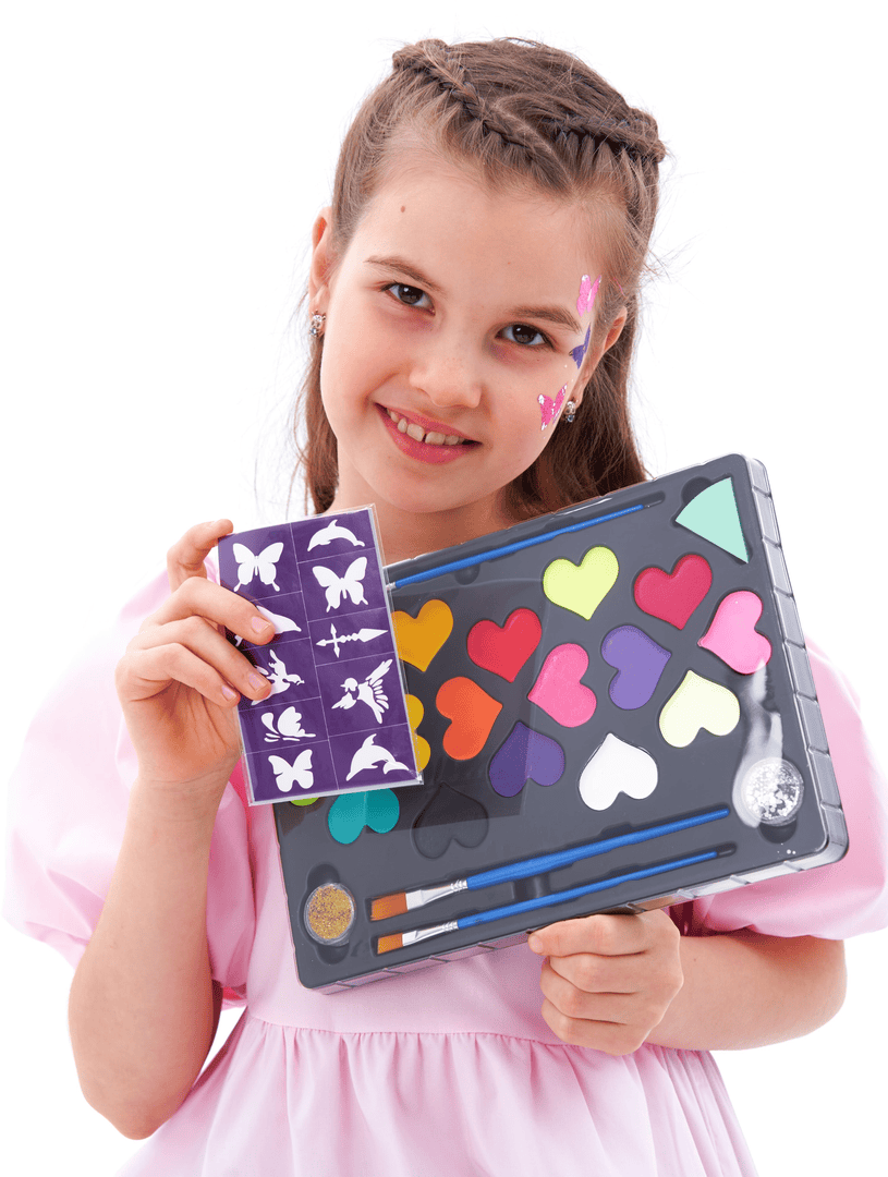 - Набор восковых мелков, набор для аквагрима, сумка-раскраска или картина из пайеток — для маленькой художницы.