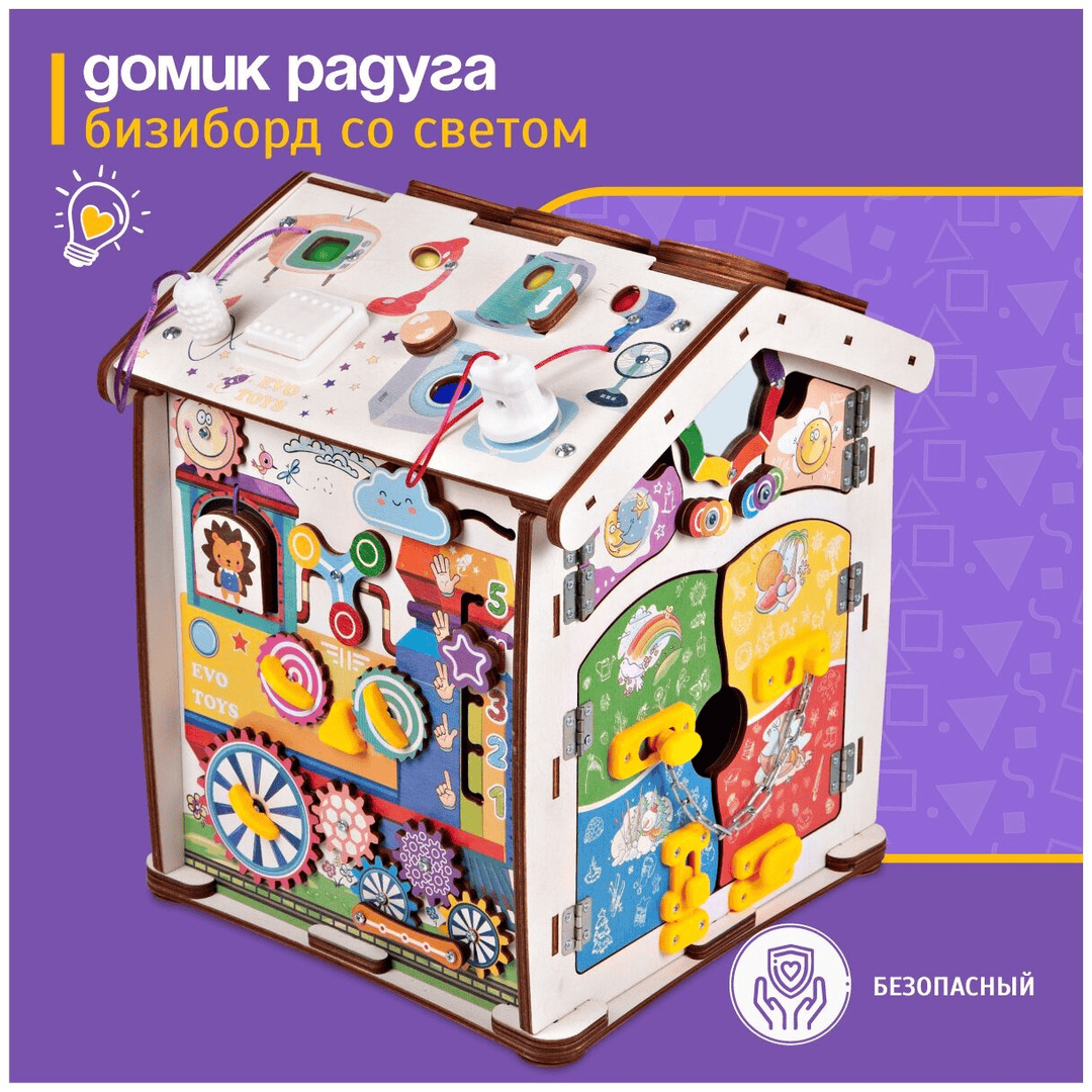 - Бизиборд — практичный и развивающий подарок, особенно для любопытных малышей.