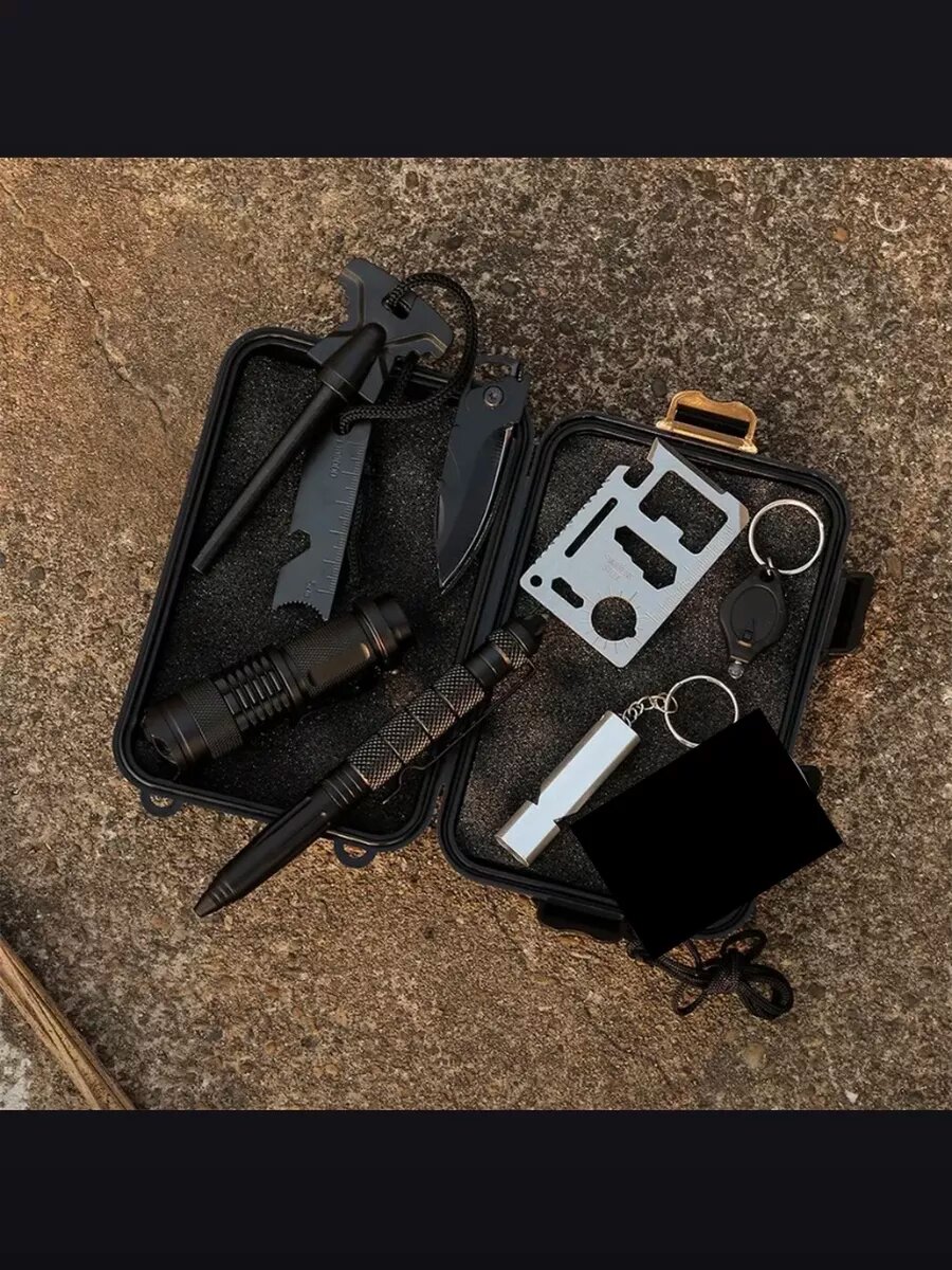 Многофункциональный набор для кемпинга - это комплект инструментов для выживания, каждый из которых может оказаться жизненно-важным в дали от цивилизации. Многофункциональный набор для кемпинга выполнен из прочнейшей стали и прослужит владельцу долгие года, он может стать отличным подарком для любителей походов, путешествий и экстремальных видов спорта. Комплектация: мультикарта, многофункциональный складной нож, фонарик с двойным режимом запуска, огниво, портативный фонарик-брелок, аварийная ручка из вольфрамовой стали, высокочастотный двойной свисток, ящик для хранения.